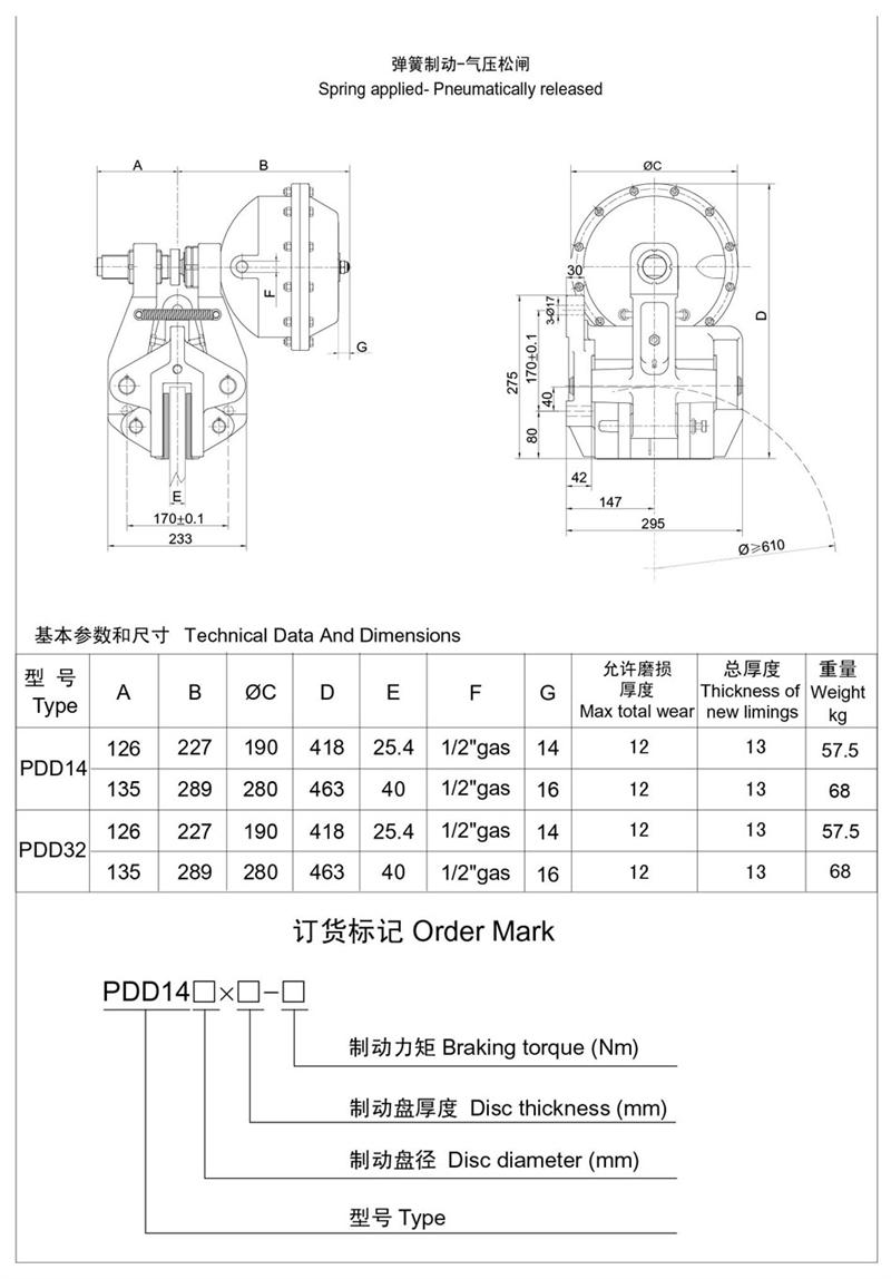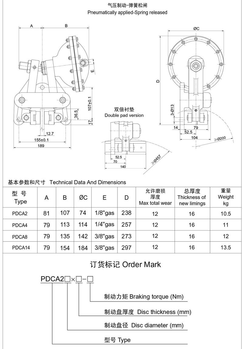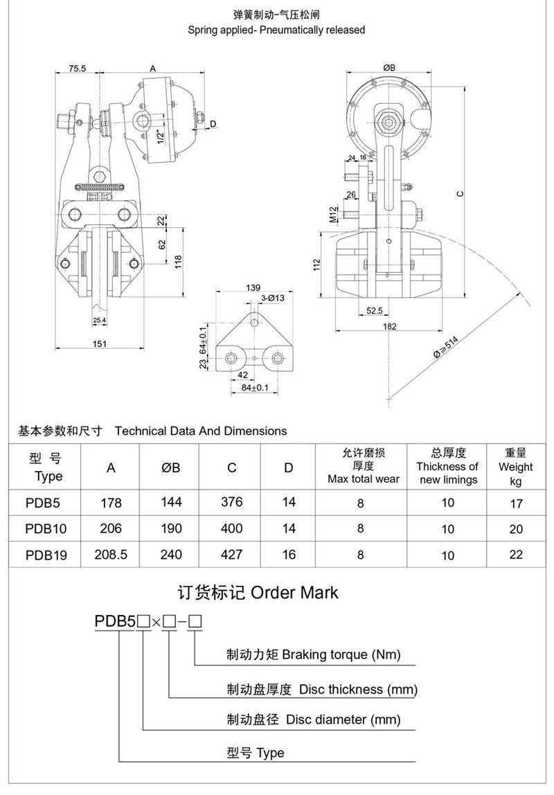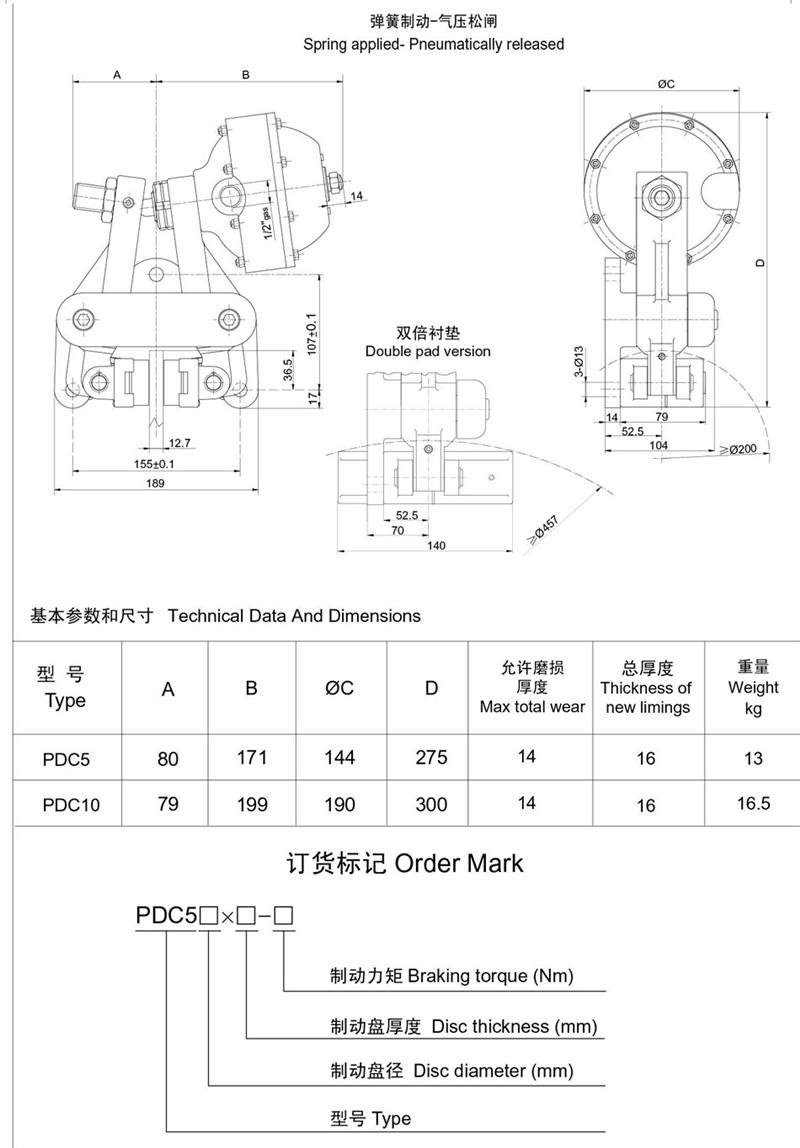 ■有常閉式設計:彈簧制動,氣動釋放(開閘);有常開式設計:由氣壓制動,彈簧釋放,制動力可隨氣壓的改變而變化,使用時可根據(jù)需要靈活改變。